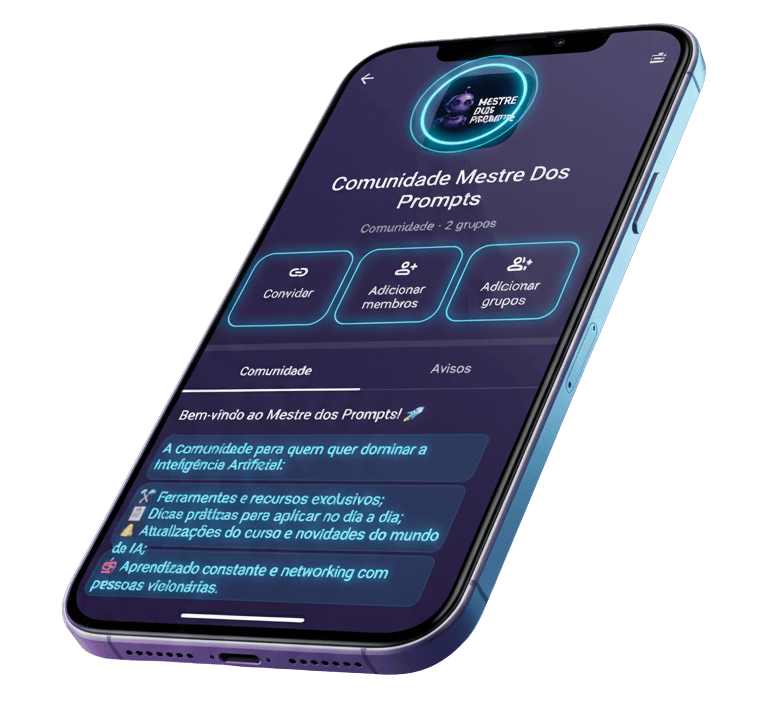 Ao garantir seu acesso hoje, você entra para a Comunidade Oficial dos Mestres dos Prompts no WhatsApp, com mais de 500 membros ativos trocando estratégias, resultados e novidades todos os dias.